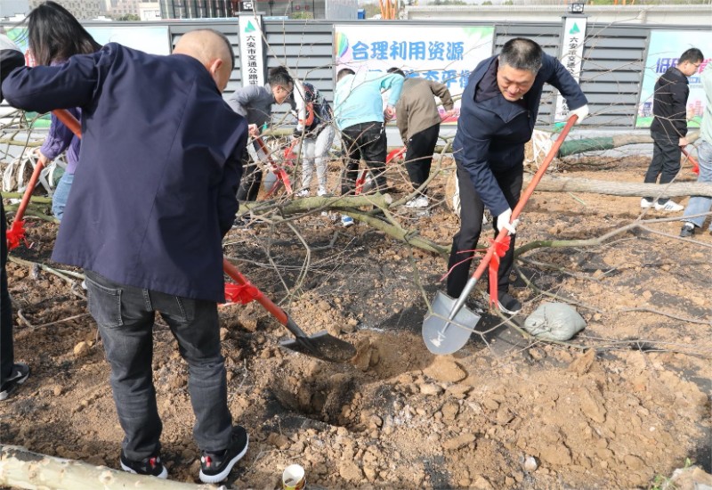 在交通公路實(shí)業(yè)董事長(zhǎng)、總經(jīng)理萬(wàn)世林的帶領(lǐng)下,大家擼起袖子,揮鍬培土,澆水栽種,分工合作,配合默契。