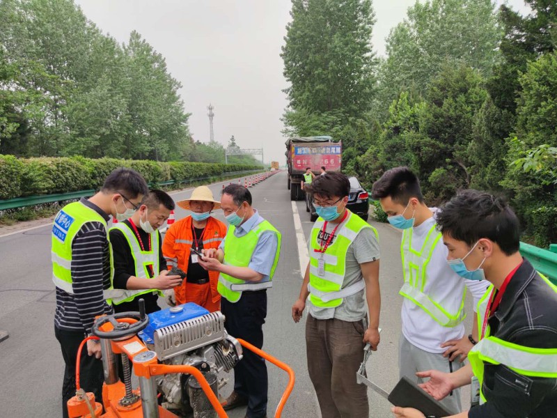 張尤平主任詢問了施工方案和安全生產(chǎn)情況,現(xiàn)場指定三個位置,進行取芯,觀察路面病害情況。張主任對施工方案給予充分肯定,要求項目部針對惡劣天氣做好專項預(yù)案,并加強安全生產(chǎn)管理和夜間巡視工作。