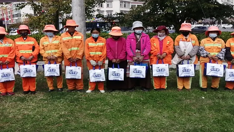 為感謝他們多年來(lái)的辛勤付出,國(guó)策環(huán)保林芝分公司相關(guān)人員向作業(yè)在一線的環(huán)衛(wèi)工人以每人80元的標(biāo)準(zhǔn),發(fā)放了當(dāng)?shù)靥禺a(chǎn)雪頓純牛奶、嘎瑪雞蛋、鹽等慰問(wèn)品,共計(jì)274份。
