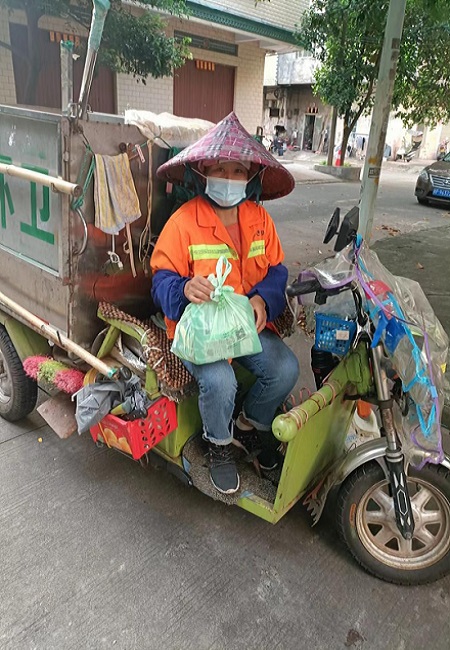 隨后,工作人員向現(xiàn)場520余名環(huán)衛(wèi)工人及園林工人挨個發(fā)放了藿香正氣水、風(fēng)油精、廣東涼茶顆粒、復(fù)方板藍根顆粒等防暑降溫用品。國策一線環(huán)衛(wèi)工人們接到派發(fā)的消暑用品時紛紛露出了開心的笑容:“大熱天有公司發(fā)放的消暑用品,解暑清涼,很開心。”